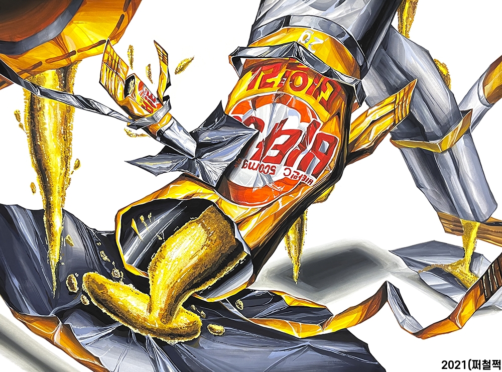 ÀÎõ´ë´Â ´ÜÀÏ »ç¹°À̱⠶§¹®¿¡ È®´ë, Ãà¼Ò¸¦ Ȱ¿ëÇÏ¿© ´Ù¾çÇÑ Á¶Çü ¿ä¼Ò·Î ¿¬ÃâÇß½À´Ï´Ù. ¡°°¡·ç¸¦ ½ñ´Â´Ù¡±¶ó´Â µ¿»çÇüÀ» ¼³Á¤ÇÏ¿© ÀÌ¿¡ ¾î¿ï¸®´Â È­¸éÀ» ÀÀ¿ëÇÏ¿´°í, Æ÷ÀåÁöÀÇ °Ñ¸é°ú ¾ÈÂÊ ¸éÀ» Ȱ¿ëÇÏ¿© »ö°ú Åæ ´ëºñ¸¦ º¸¿©ÁÖ¾ú½À´Ï´Ù. ä»ö¿¡¼­´Â ºñŸ¹Î Æ÷ÀåÁö, °¡·ç ¸ðµÎ °°Àº ³ë¶õ»öÀÌÁö¸¸ Áß°£»ö °è¿­À» ´Ù¸£°Ô ÇÏ¿© Â÷À̸¦ ÁÖ¾î¾ß°Ú´Ù°í »ý°¢Çß½À´Ï´Ù. Æ÷ÀåÁö´Â ÆÛ¸Ó³ÍÆ® ¿À·»Áö, °¡·ç´Â ¿À¿ìÄ¿°è¿­ Áß°£»öÀ» »ç¿ëÇÏ¿´½À´Ï´Ù. ½ÃÇè Àü³¯ Æ÷ÀåÁöÀÇ Æ¯Â¡ÀûÀÎ ºÎºÐÀÎ ·¹Å͸µÀ» ÅëÇÑ ºñ´Ò¹¦»ç¸¦ ¾È³ª½Ü²²¼­ ½Ã¹üÀ¸·Î º¸¿©Áּż­ À̸¦ ¶°¿Ã¸®¸ç Áú°¨À» »ì·Á ä»öÇÏ·Á°í ³ë·ÂÇÏ¿´½À´Ï´Ù.