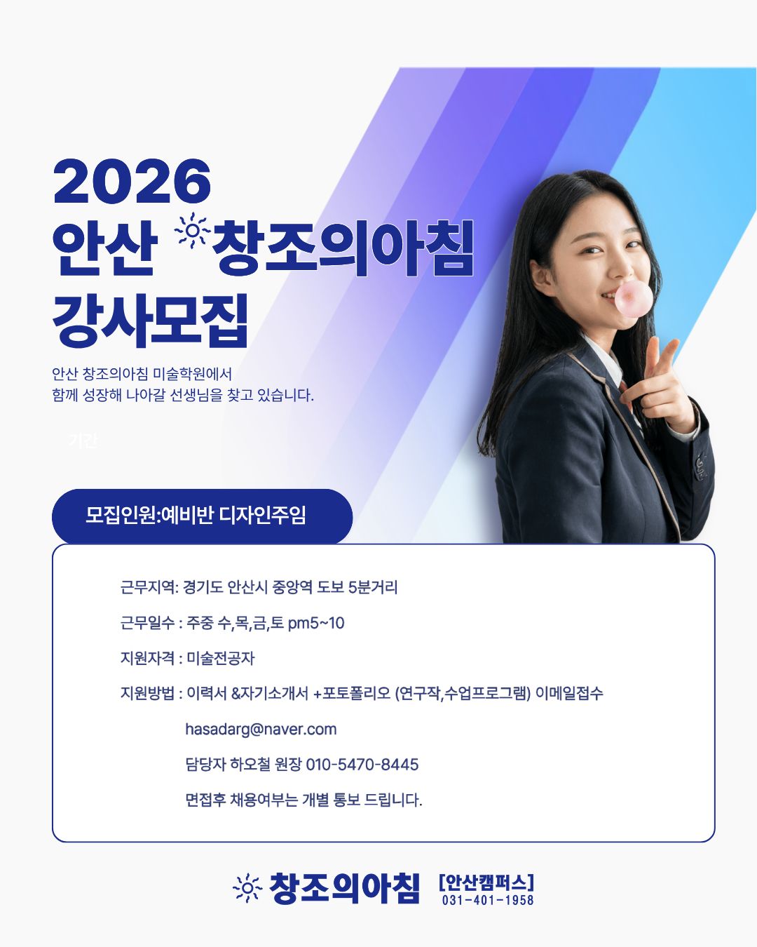 ¾È»ê âÁ¶ÀǾÆÄ§¿¡¼­ ¿¹ºñ¹Ý µðÀÚÀÎ ¼±»ý´ÔÀ» ¸ðÁýÇÕ´Ï´Ù.